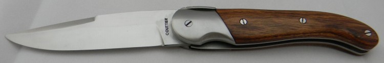 Le couteau Chasse est un model déposé et déssiné par Charles Couttier Maitre artisant coutelier à Thiers. Il le produit pendent de nombreuses année puis nous en sède la fabriquation exclusive. Le Chasse est un couteau Laguiole Plient à liner et dispose une imposante lame de 4 mm épaisseure.