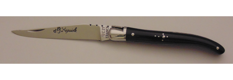Le vrais couteau Laguiole se caractérise par la mouche sur le dos du ressort et par la croix du berger sur le manche.