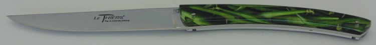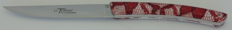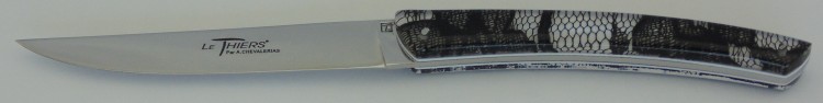 Suite a la réflection commune de toute la proféssion coutelière thiernoise, le couteau "Le Thiers" est né. Encadré car la confrérie nous avons créé notre propre game de Thiers. "Le Thiers par Alain Chevalerias". On le reconnait par sa ligne double vague.